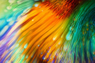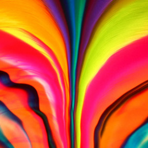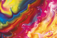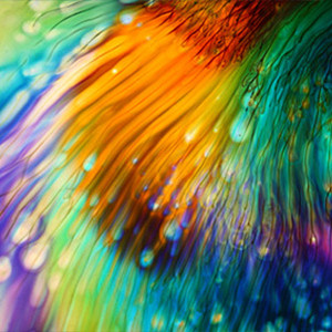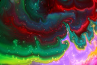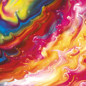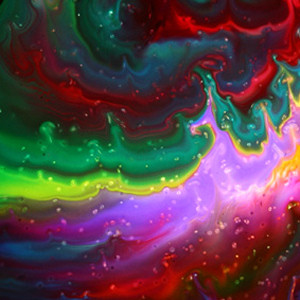יצירת אמנות יפהפייה, מוקרנת על מסך גדול ומציגה תמונות נעות, זורמות, צבעוניות